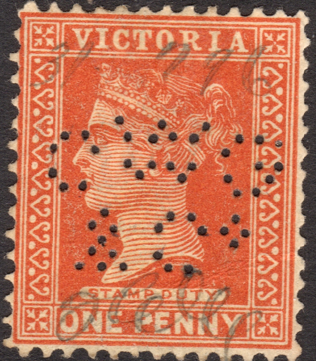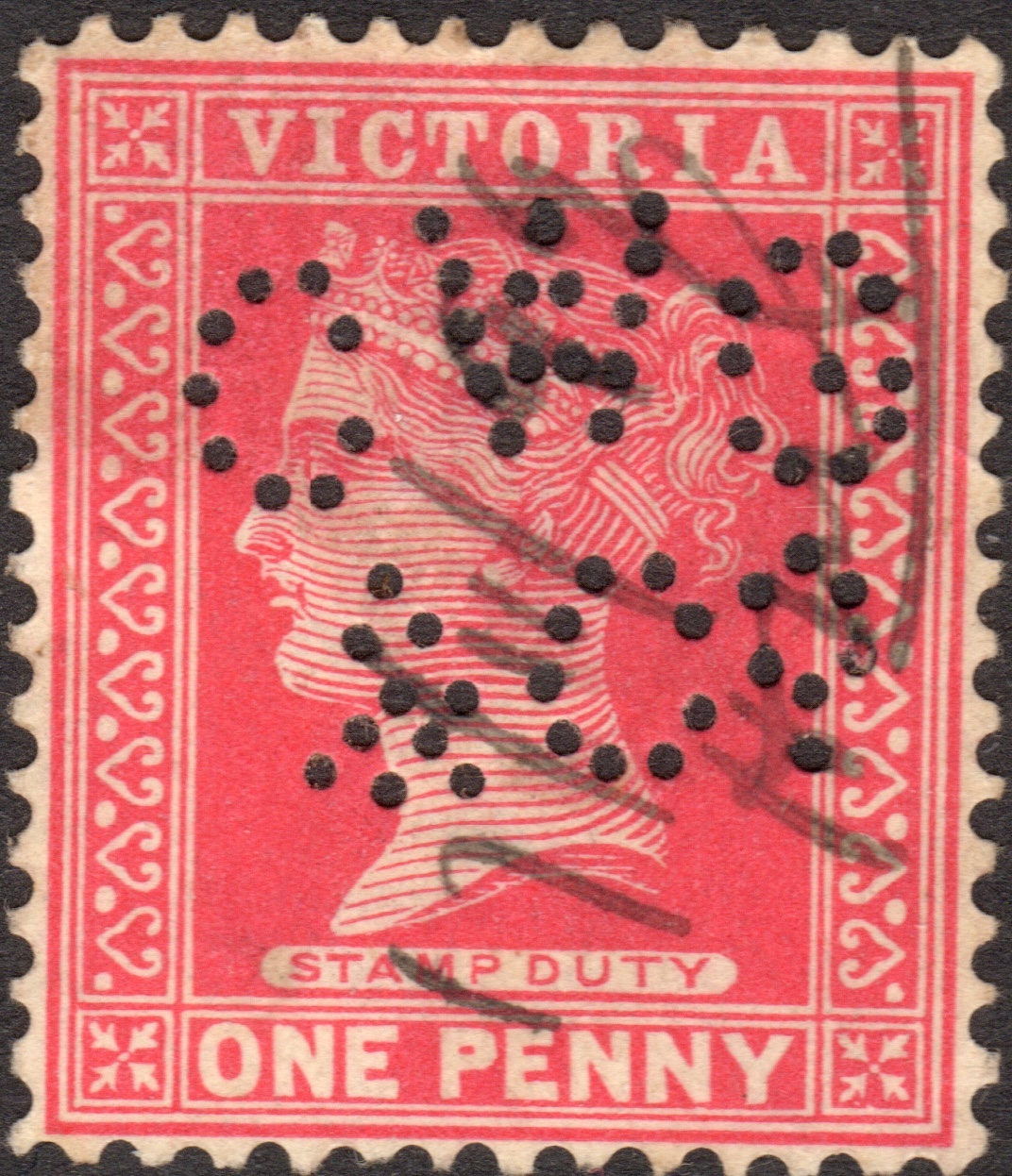 Western Market Building, northeast corner. The right hand side is the Collins St (north) frontage, the left hand side of the image shows the Market St (East) frontage as Market St descends towards Flinders Lane. 57 William St would have been on the William St (or Western) frontage just around the corner of Collins St. Earlier studies of the Private Perfins of Australia stated that the address of Charles W Gray & Co was 497 Collins St. We can find no record of this. 497 Collins is the iconic Rialto Building, built in 1889-90, but Charles W Gray & Co are not listed as tenants. The Rialto Building is in the middle of the next block heading west down Collins St, and is no way associated with the Western Market. Device: The various CWG/&Co patterns are almost all made from a temporary die in a single die format. Such devices, which could produce these temporary patterns, were used by some Stamp Vendors in Melbourne from late 1800’s and early part of the 20Th Century. The company purchased two customised devices, the first in 1899, which was in use until 1903, and another in 1902 that was in service until 1905. But neither are found used on revenues stamps. With the 2 patterns made from the customised devices and the many (13+) patterns that were made from the temporary die there are 15+ patterns that could be reasonably attributed to Charles W Gray & Co and these include patterns in the layout CWG, CWG/C, CWG/&C and the CWG/&Co. The patterns found on revenue stamps are as follows: CWG/&Co.a 1895-96 CWG/&Co.b 1896 CWG/&Co.c 1896-1901 CWG/&Co.d