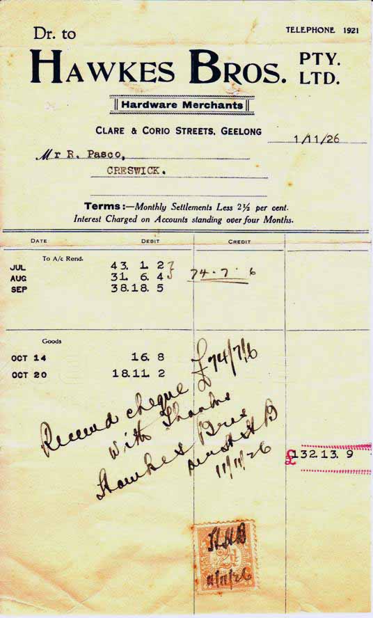 -------------------------------------------------------- HB.b User: Hawkes Bros. Pty. Ltd. Hardware Merchants, Auto Dealers Address: Clare & Corio St, Geelong, VIC Revenue Use: 1902 Series 6d (Bistre) 1911 Series 6d (Violet) Rarity Scale: