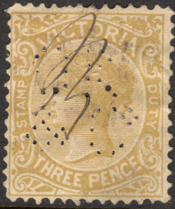 Later Corner of Lorimer and Ferrars St, South Melbourne, VIC Revenue Use: 1886-1899 Series, inscribed 'STAMP DUTY' 3d Rarity Scale: