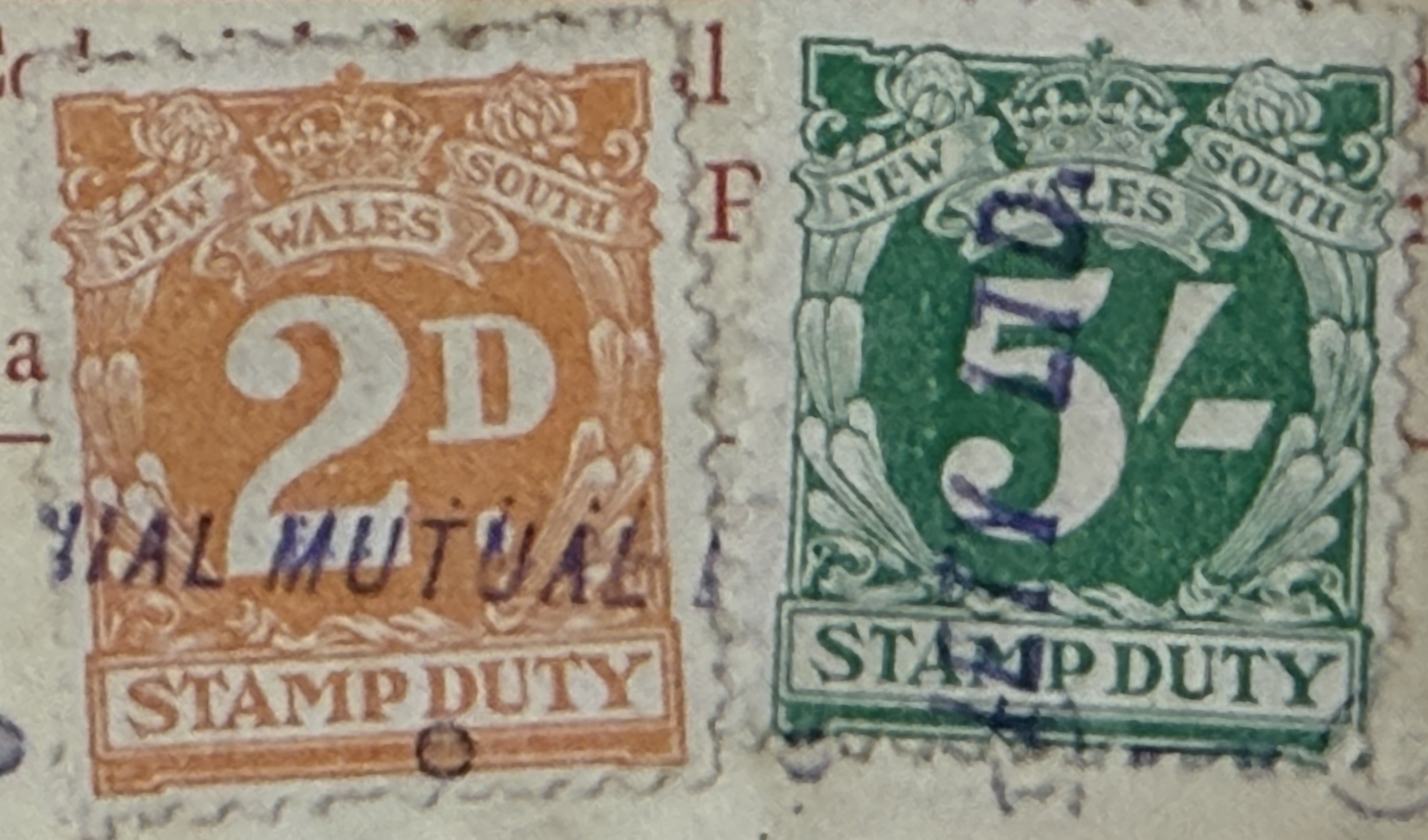 .b User: Commonwealth General Assurance Corporation Ltd Insurance Provider Address: 9 Hunter St, Sydney, NSW Revenue Use: Diagonal: 9d. Vertical 8c. Revenue Use: .a 1929-66 Numeral issue 10/- .b 1929-66 Numeral issue 9d, 3/-, 8/- Rarity Scale: .a 1929 Numeral issue 10/- R2 .b 1929 Numeral issue 9d R3, 3/- R3, 8/- R4 Background: *The Commonwealth General Assurance Corporation Ld (CGA) was formed in NSW in 1920 and initially offered only Life assurance products but soon expanded into Fire insurance and other risks. In 1926 they sold their fire portfolio to the Commonwealth Traders Insurance Co. CGA was acquired by the Zurich Financial Services Group in 1961 and re-branded it as Zurich Financial Services Australia Limited, otherwise known as Zurich Australia. Zurich Financial Services is an insurance-based financial services provider that operates worldwide. Device: .a & .b handstamp Related Patterns: Nil *Zurich Insurance website Trove -------------------------------------------------------- C.I.G./N.S.W./PTY LTD.a