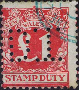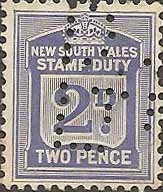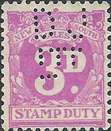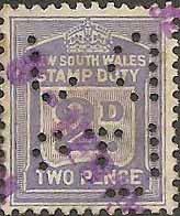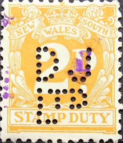 Related patterns: Refer to other David Jones Limited patterns in: NSW: DAVIDJONESLD.a DJ/LTD.e DJ/LTD.f Other – Section 1 Commercial Perfins and Cancelling Devices (PAID) DJONES&CO.a Other - Section 2 Commercial Overprints: DAVID/JONES/LTD.a DAVID JONES/LTD.b DAVID JONES/LTD.c DAVID JONES/LTD.d DAVID JONES/LTD.e DAVID JONES/LTD.f DAVID JONES/LTD.g QLD: Other - Section 2 Commercial Overprints: DAVID/JONES.a WA: Other - Section 2 Commercial Overprints: DAVID JONES/(PERTH)/LTD..a .a .b .c .d -------------------------------------------------------- DJ/LTD.e User: David Jones Ltd Department Store Address: Elizabeth & Market St's, Sydney, NSW Revenue Use: Numeral 1917-28 issue 2d, 2d[blue] Numeral 1929-66 issue 2d Rarity Scale: Numeral 1917-28 issue 2d R2, 2d[blue] R3 Numeral 1929-66 issue 2d R1 Background: See DAVIDJONESLD.a above Device: This device was known to have been produced by Slopers in London in March 1908 and it was of a 12-die format, 6 wide and 2 high. There are subtle differences in the Dies but they are essentially the same and as a result we consider it to be a single pattern. As to be expected from Slopers the device was a sound one and it was in service from 1908 until at least 1951. Not only was the period of service long but the device was also in frequent use as the DJ/LTD.e pattern is one of the most common found used in Australia. The pattern is found used the revenue stamps of NSW as well as the postage stamps of NSW, Queensland, Tasmania and South Australia and the postage stamps of Australia. The device was always located in Sydney and the non-NSW usage is limited to the immediate pre Commonwealth period when the Postmaster General was using up sock of old State issues. The device was replaced by the DJ/LTD.f device, see below. Related patterns: Refer to other David Jones Limited patterns in: NSW: DAVIDJONESLD.a DJ/LTD.a DJ/LTD.b DJ/LTD.c DJ/LTD.d DJ/LTD.f Other – Section 1 Commercial Perfins and Cancelling Devices: (PAID) DJONES&CO.a Other - Section 2 Commercial Overprints: DAVID/JONES/LTD.a DAVID JONES/LTD.b DAVID JONES/LTD.c DAVID JONES/LTD.d DAVID JONES/LTD.e DAVID JONES/LTD.f DAVID JONES/LTD.g QLD: Other - Section 2 Commercial Overprints: DAVID/JONES.a WA: Other - Section 2 Commercial Overprints: DAVID JONES/(PERTH)/LTD..a -------------------------------------------------------- DJ/LTD.f User: David Jones Ltd Department Store Address: Elizabeth & Market St's, Sydney, NSW Revenue Use: 1929-66 issue 2d, 2d thin 'NSW' underprint, 3d Rarity Scale: 1929-66 issue 2d R2, 2d thin 'NSW' underprint R4, 3d R1 Background: See DAVIDJONESLD.a above Device: As with its predecessor, the DJ/LTD.f device was another Sloper device and again a multi die format. This was a smaller device with 6 dies in a 3 wide by 2 high layout. Again the dies were almost identical so we have considered it to be a single pattern. See the image below which is a scan of an actual 'pull' from the device. The device was used between 1949 and 1975 and as with the earlier DJ/LTD.e device it was in frequent use as the DJ/LTD.f pattern is also one of the most common patterns found on Australian stamps. The pattern is found used on the revenue stamps of NSW as well as the postage stamps of Australia. Related patterns: Refer to other David Jones Limited patterns in: NSW: DAVIDJONESLD.a DJ/LTD.a DJ/LTD.b DJ/LTD.c DJ/LTD.d DJ/LTD.e Other – Section 1 Commercial Perfins and Cancelling Devices: (PAID) DJONES&CO.a Other - Section 2 Commercial Overprints: DAVID/JONES/LTD.a DAVID JONES/LTD.b DAVID JONES/LTD.c DAVID JONES/LTD.d DAVID JONES/LTD.e DAVID JONES/LTD.f DAVID JONES/LTD.g QLD: Other - Section 2 Commercial Overprints: DAVID/JONES.a WA: Other - Section 2 Commercial Overprints: DAVID JONES/(PERTH)/LTD..a -------------------------------------------------------- D.T.a User: Derwent & Tamar Assurance Co Ltd Insurance Provider Address: 95 Pitt St, Sydney, NSW Revenue Use: KEDVII 1909-28 issue 4d, 8d, 1/-, 2/-, 3/-, £1 Numeral 1917-28 issue Numeral 1929-66 issue 4d, 6d, 8d, 9d, 1/-, 1/6, 2/-, 2/6, 3/-, 5/-, £1 Rarity Scale: KEDVII 1909-28 issue 4d R4, 6d R4, 8d R4, 1/- R3, 2/- R3, 3/- R3, £1 R4 Numeral 1917-28 issue Numeral 1929-66 issue 4d R3, 6d R3, 8d R4, 9d R4, 1/- R2, 1/6 R4, 2/- R4, 2/6 R3, 3/- R3, 4/- R2, 5/- R3, £1 R4 Background: The Company was formed in October, 1838, as ‘The Derwent and Tamar Fire and Marine and Life Assurance Company’, and it is considered to be the first Australian insurance company. The name is derived from the rivers of Tasmania’s major cities, Derwent (Hobart) and Tamar (Launceston). The company established private fire brigades in both Hobart and Launceston and these operated until the creation of Municipal Fire Brigades in 1883. The company grew rapidly from the 1850’s and increased its branches as well as establishing an agent in Melbourne and later Geelong and Sydney. In 1877 the company completed its offices at the corner of Macquarie and Murray Streets in Hobart. In 1908 the Company was registered as a limited liability company and its name was changed to be ‘The Derwent and Tamar Assurance Company Limited’. Later in 1912 the Derwent and Tamar merged with the London and Lancashire Insurance Company Limited but Derwent and Tamar continued to trade under their own name. The Royal Insurance group acquired the London and Lancashire Group, and its subsidiaries including Derwent and Tamar in 1961 and these ultimately became part of the Royal, Sun, Alliance Group (RSA). Derwent and Tamar Building, Cnr Macquarie & Murray St's, Hobart. Device: The DT.a device was most likely a single head device as it is able to produce single and central strikes in the Edward VII bi colour issues in both positions 1 and 2. The pattern is only found on the revenue stamps of NSW and only during the period 1925-1956. The device is a sound one and produces clear strikes over its life. Related Patterns: Refer to other related company patterns in: NSW: AAA/Co.a CM/Co..a LL.a LL/Co.a Othe
