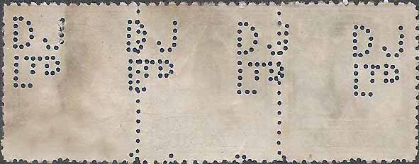 The presence of these blocks of pins under the DAVIDJONESLD means that the full pattern was not only wide but also quite tall. Multiple strikes often appear as over strikes and can be quite confusing. It seems that when the device was being used as a perforating device the operator was trying to get the key words 'David Jones Ld' to be on each row of stamps.