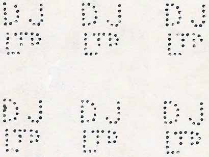 Despite the fact that the pattern is found used over an extended period, between the early 1950’s and the end of 1957, it is still a scarce pattern, even on postage stamps. This combined with the fact that different strikes show different structure in the number blocks suggests that the device was still in use as a cancelling device when it was employed as a perforating device. It is possible that the device was sometimes used as stopgap perforator when the DJLTD.1 and 2 devices were not operating. Related patterns: Refer to other David Jones Limited patterns in: NSW: DJ/LTD.a DJ/LTD.b DJ/LTD.c DJ/LTD.d DJ/LTD.e DJ/LTD.f Other – Section 1 Commercial Perfins and Cancelling Devices: (PAID) DJONES&CO.a Other - Section 2 Commercial Overprints: DAVID/JONES/LTD.a DAVID JONES/LTD.b DAVID JONES/LTD.c DAVID JONES/LTD.d DAVID JONES/LTD.e DAVID JONES/LTD.f DAVID JONES/LTD.g QLD: Other - Section 2 Commercial Overprints: DAVID/JONES.a WA: Other - Section 2 Commercial Overprints: DAVID JONES/(PERTH)/LTD..a *David Jones website